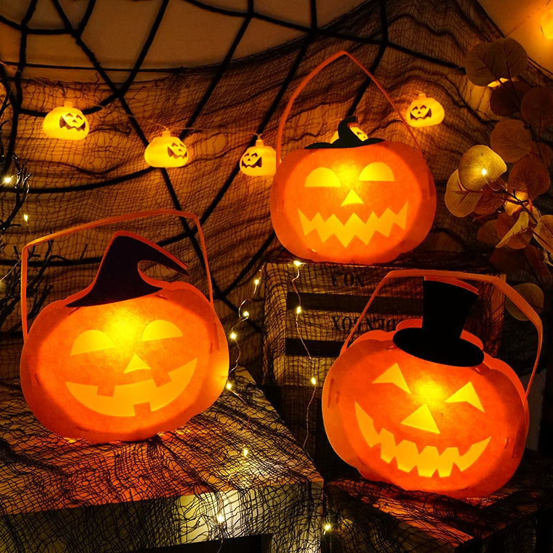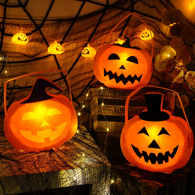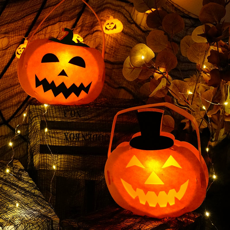 1707BA Halloween Kindergarten Handmade DIY Lantern Pumpkin Lamp Children's Homemade Decoration Satchel Luminous Candy Bag Lantern