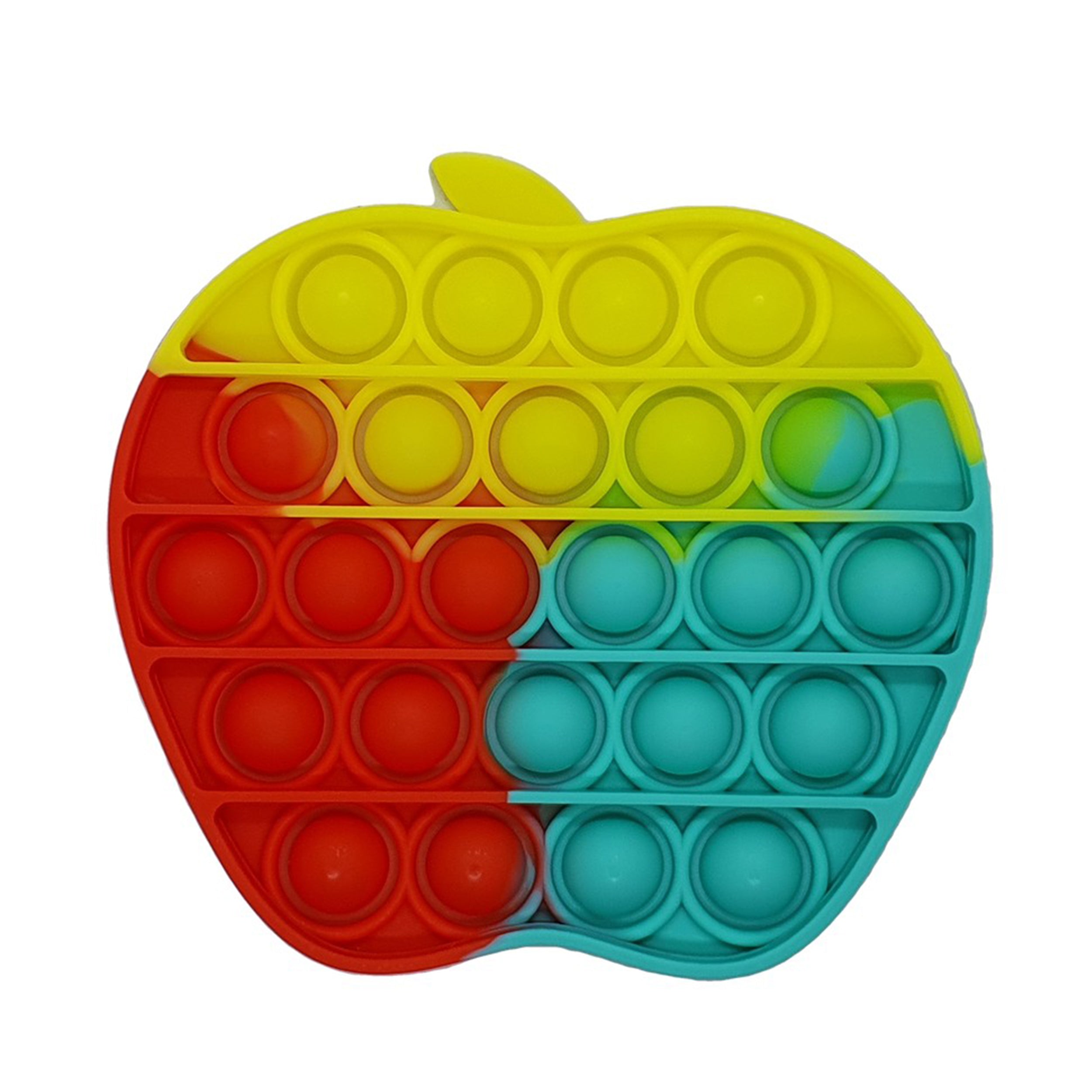 Introducing our Rainbow Apple Pop It Toy, a delightful sensory tool designed for kids! Shaped like an apple with multiple popping bubbles, this toy offers an engaging and calming tactile experience. By pressing the bubbles, it produces a gentle 'pop' sound and feel, providing stress relief, anxiety reduction, and sensory relaxation. Crafted from durable silicone, this apple-shaped pop toy is washable, reusable, and perfect for kids' sensory exploration and fidgeting. It encourages imaginative play while offering a soothing and entertaining sensory experience.