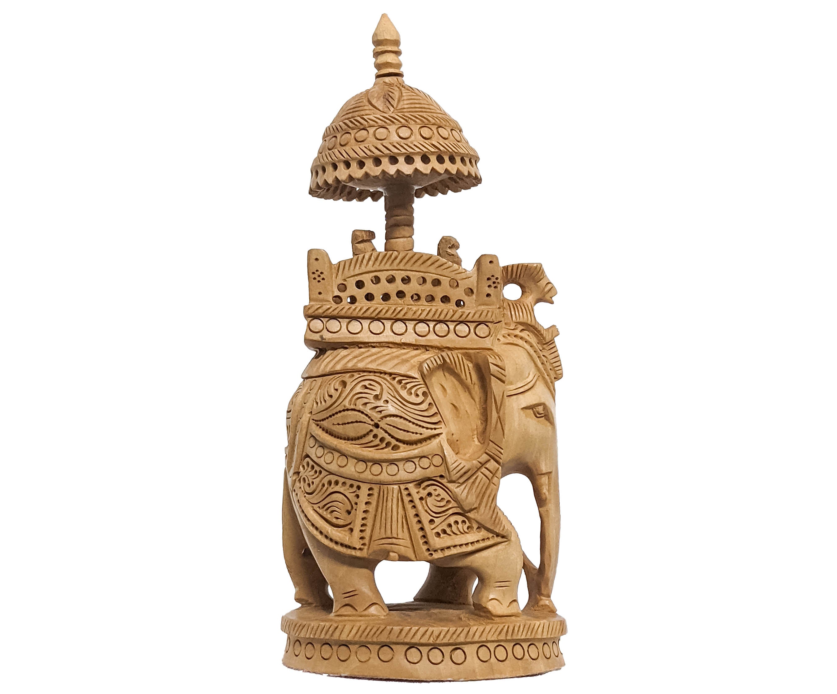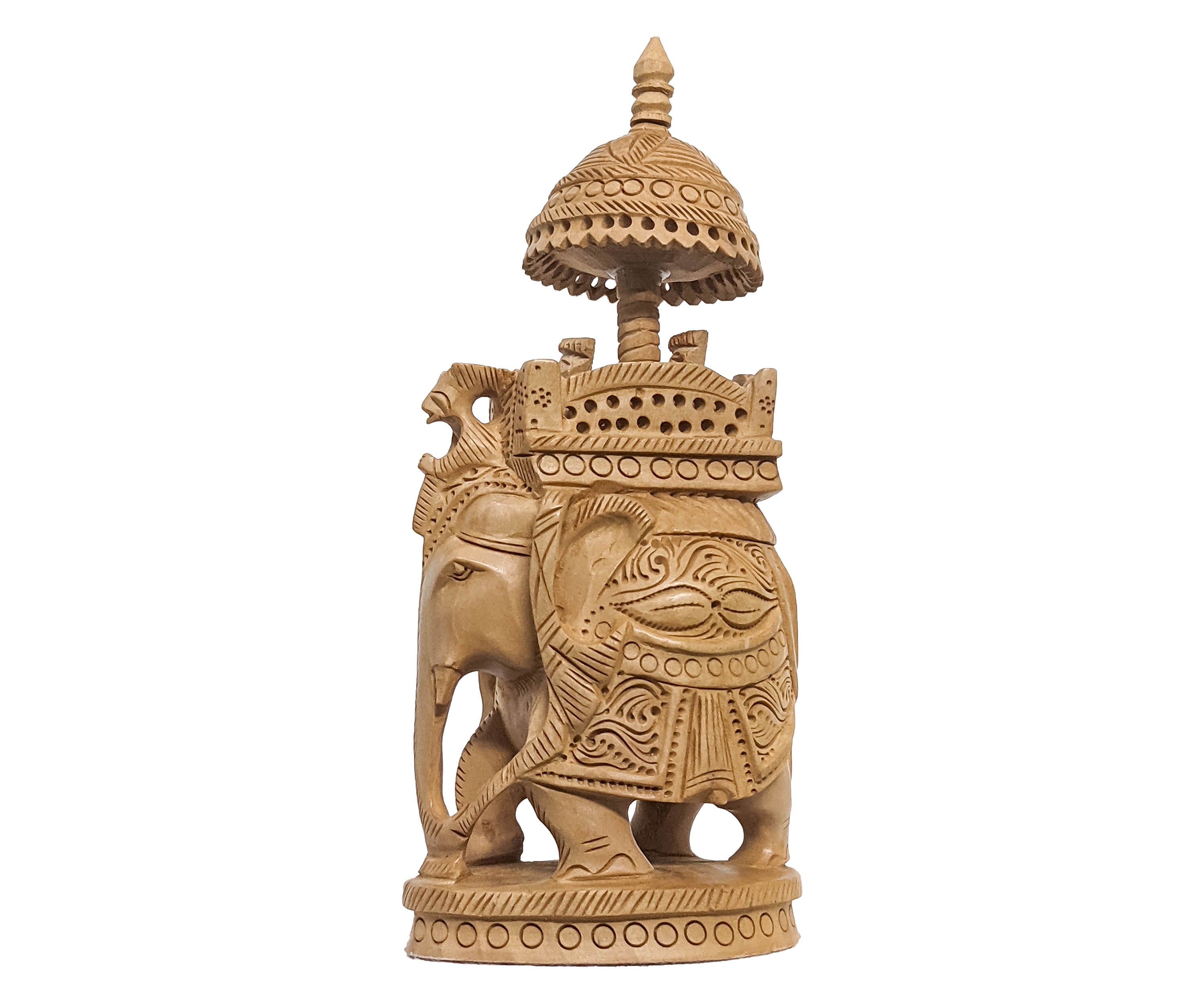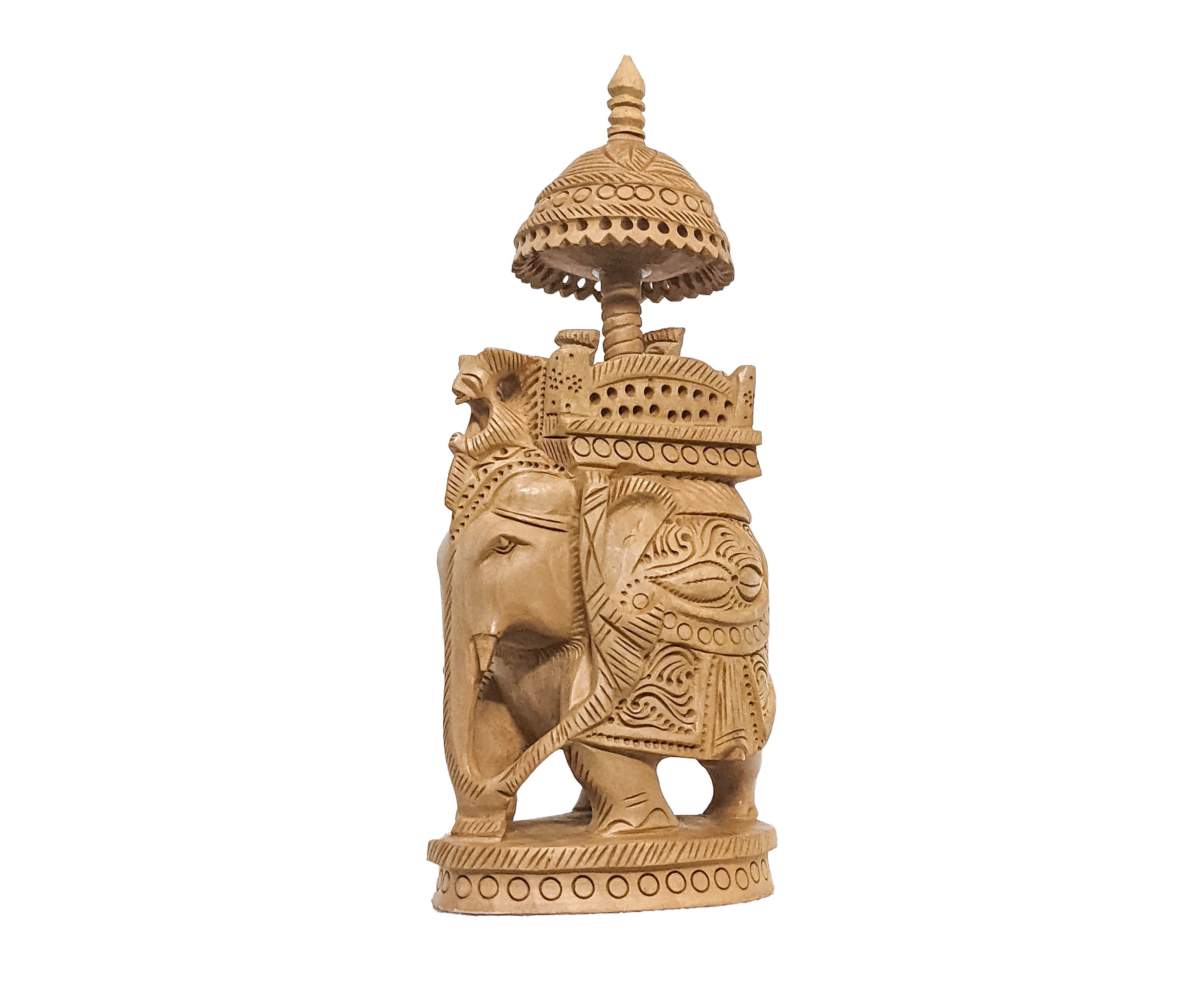 Embrace the regal grandeur of our Hand-Carved Wooden Art Sculpture featuring a majestic Maharaja Elephant. This exquisite masterpiece is meticulously crafted by skilled artisans, showcasing intricate hand-carved details and artistic finesse. The sculpture portrays the grandeur and elegance reminiscent of a Maharaja's elephant, capturing the essence of cultural heritage and opulence. Made from high-quality wood, this striking sculpture adds a touch of sophistication and cultural richness to any space, making it an eye-catching centerpiece or a statement decor piece that speaks volumes about craftsmanship and artistic mastery.