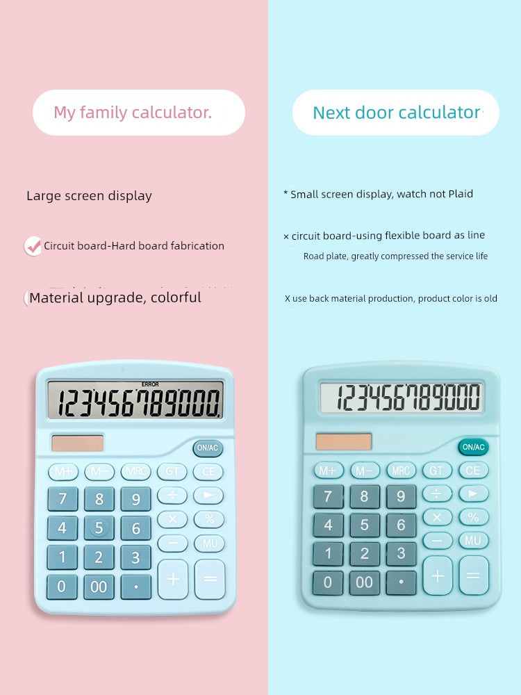 Sleek Solar Power: Utilizes solar energy to power the calculator, making it eco-friendly and eliminating the need for battery replacements. The solar panel ensures consistent performance in various lighting conditions.