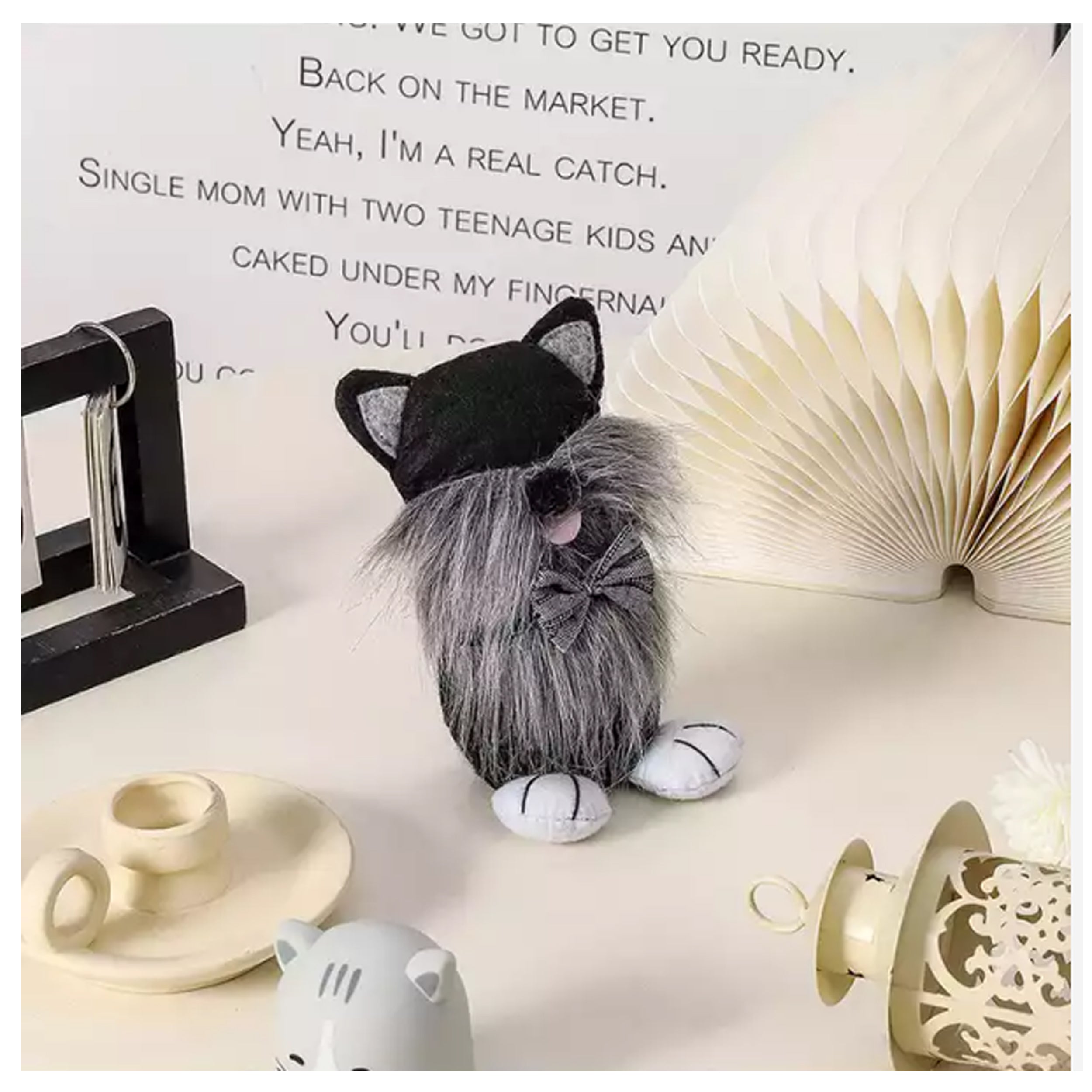 Introducing our adorable Cat Plush Toy, a delightful addition to any cuddly toy collection. Crafted with soft and huggable materials, this plush cat exudes charm and coziness. With its lifelike design and attention to detail, it brings the playful spirit of a cat to life, making it an ideal companion for children's imaginative play or as a comforting bedtime buddy. Whether displayed on a bed or hugged tight during playtime, this cuddly feline is sure to become a treasured friend for any cat lover.