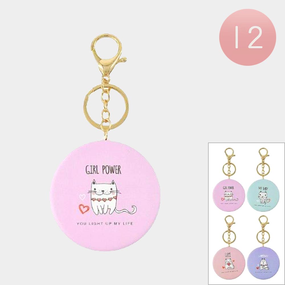 Introducing 12PCS - Cat Printed Compact Mirror Keychains: Discover a delightful set of cat-themed compact mirror keychains, combine style and practicality.