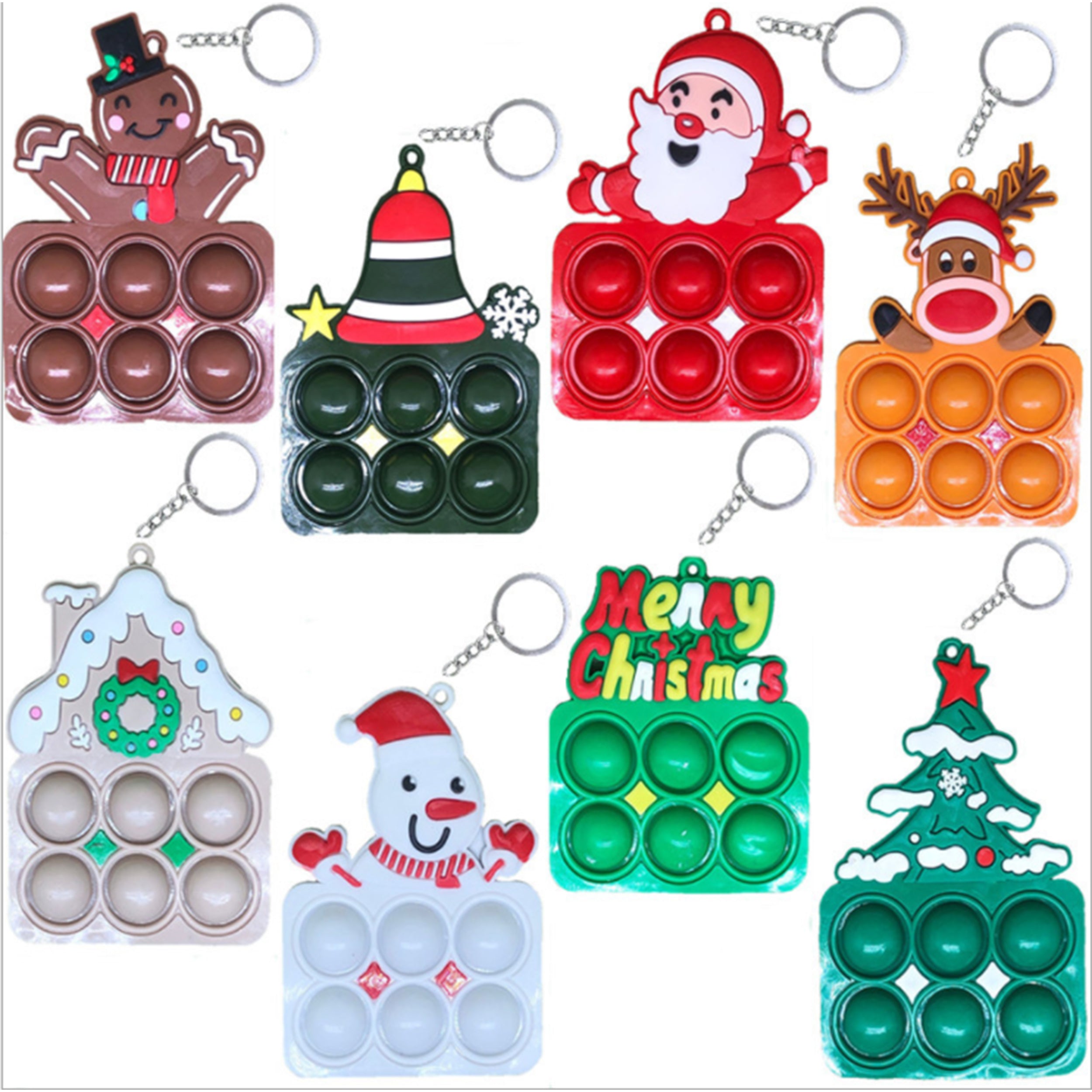 Embrace the holiday spirit and stress relief with our Christmas Decompression Keychain featuring Santa Claus! This adorable keychain doubles as a stress-relieving accessory. Squeeze or manipulate the soft and resilient Santa Claus figure to alleviate stress and find relaxation during the festive season. The compact size allows it to attach easily to your keys, bag, or anywhere you need a little holiday cheer and a moment of decompression. Spread joy while relieving stress with this delightful Christmas-themed keychain.