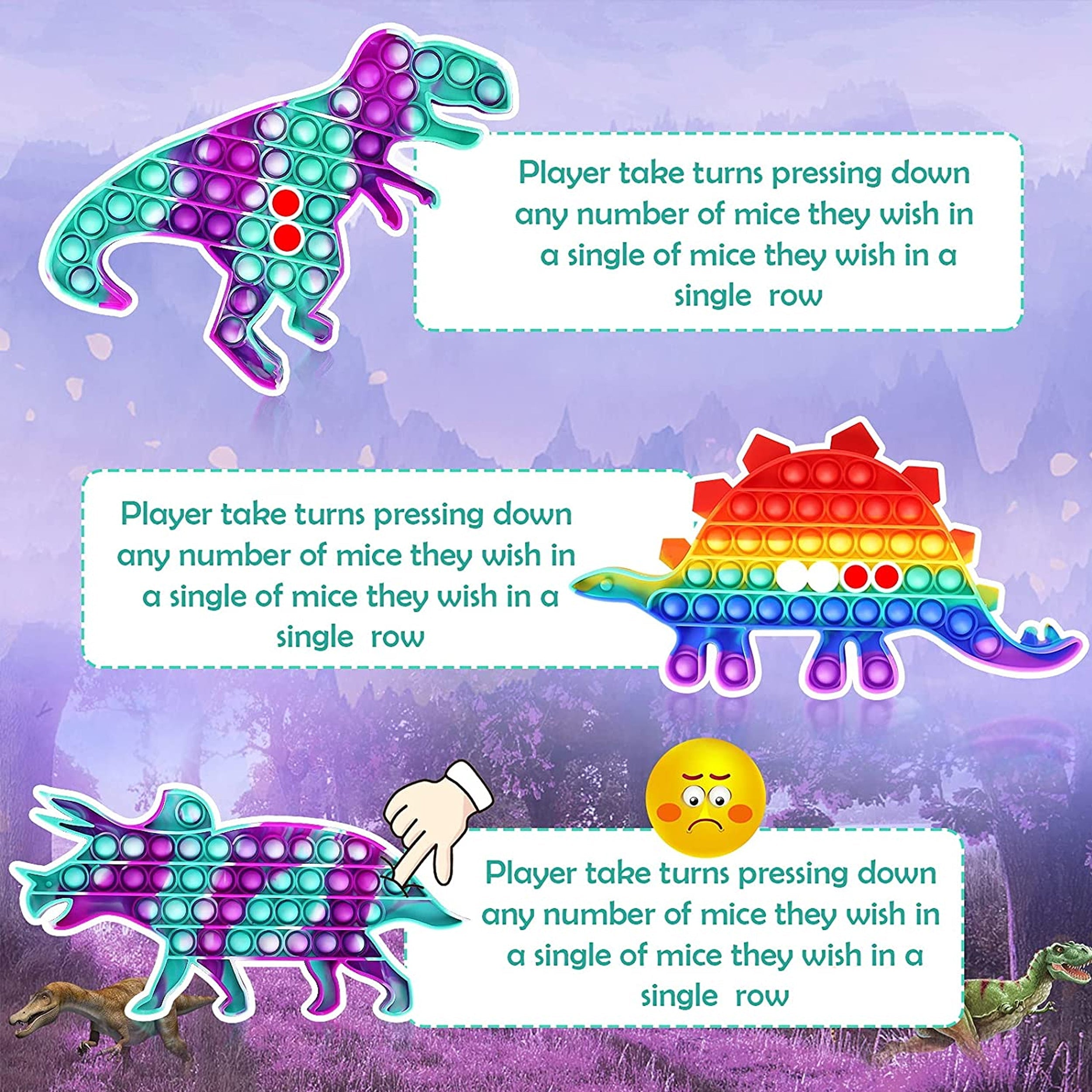 Explore prehistoric fun with our Dinosaur Pop It Fidget Toy! This captivating toy features a dinosaur-themed design with multiple popping bubbles that provide an enjoyable sensory experience. Whether you're a kid fascinated by dinosaurs or an adult seeking stress relief, this toy offers tactile engagement and entertainment. Press and pop the bubbles for a soothing sensation, perfect for relaxing, improving focus, and playful fidgeting. Embrace the world of dinosaurs and enjoy stress relief with this delightful toy suitable for all ages.