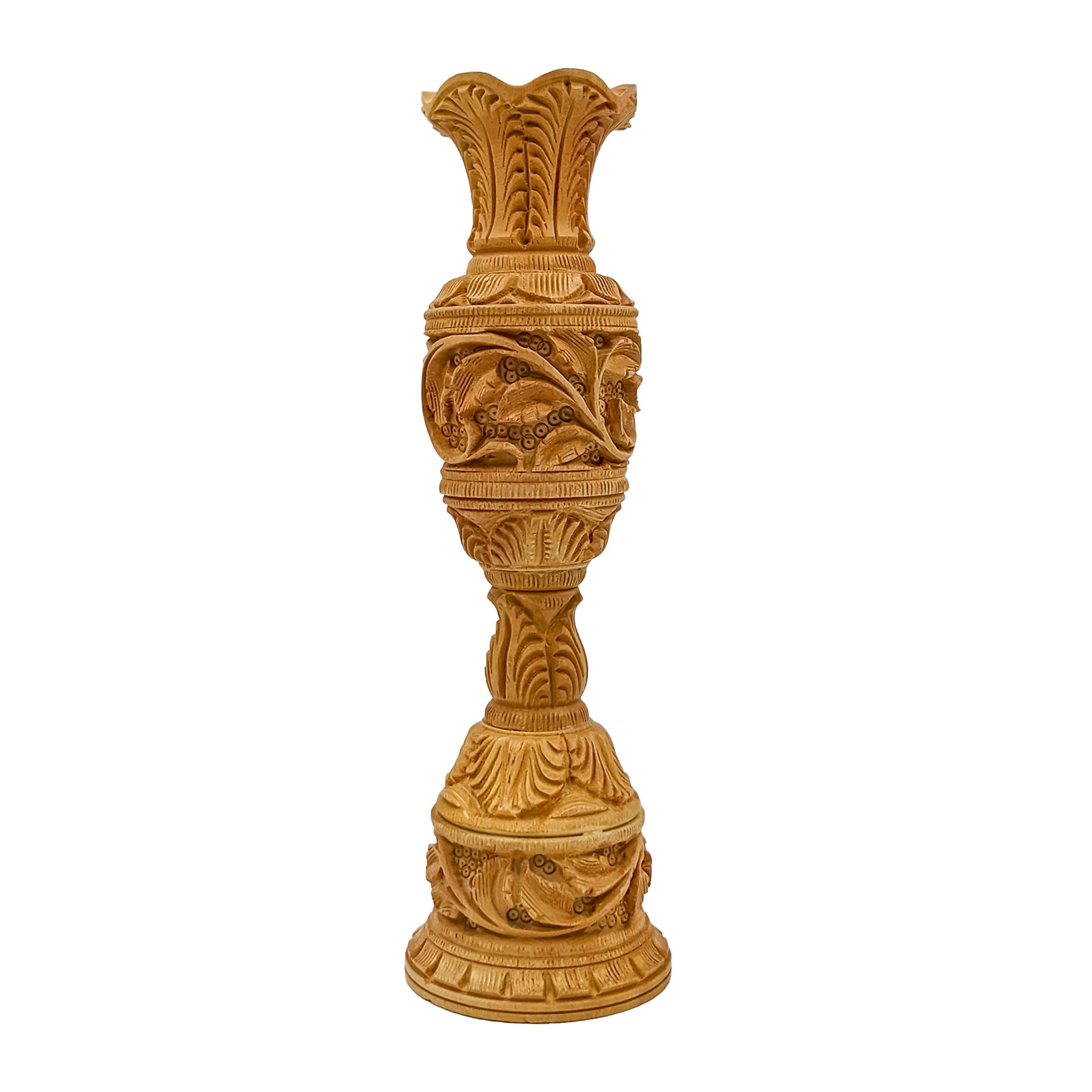 Immerse your living space in the allure of handcrafted artistry with our 6-inch Handcrafted Wooden Flower Vase. Carefully crafted with precision and finesse, this wooden vase showcases exquisite craftsmanship and a charming design. Its 6-inch stature makes it an ideal vessel for displaying your favorite blooms, adding a touch of natural beauty to any room. Elevate your home decor by placing this intricately designed vase on tabletops, shelves, or mantels. Embrace the blend of artistry and functionality, as this wooden vase becomes a centerpiece that exudes elegance and sophistication in your home.