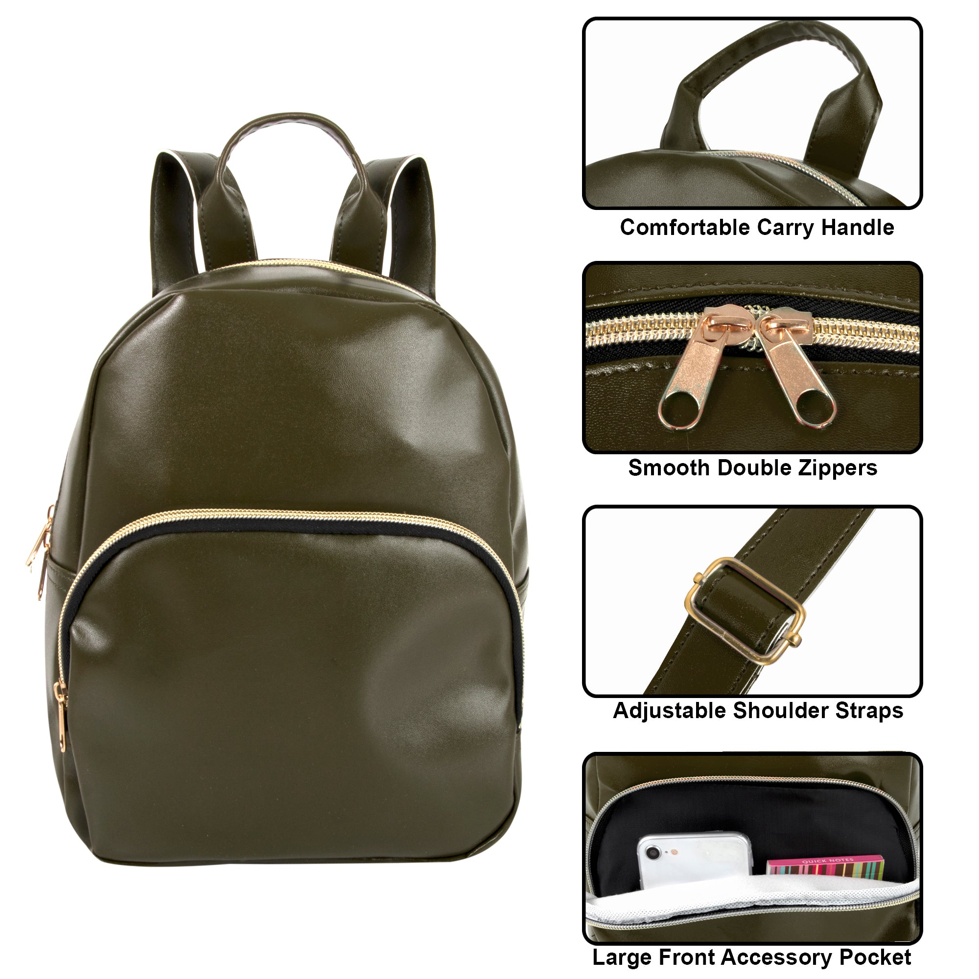 Front Zippered Pocket: Effortlessly access and organize your belongings on the go. Padded Adjustable Straps: Experience comfort tailored to your needs with easily adjustable padded straps. Compact Dimensions: Measures 10” x 8” x 3” for a compact and convenient carrying solution. Durable Vinyl Construction: Built to withstand daily wear and tear, ensuring long-lasting use. Modern Design: Sleek black color adds a touch of sophistication to your style. Wholesale Package: Receive 24 backpacks per case, perfect for bulk orders or resale opportunities. Versatile Everyday Use: Ideal for daily errands, travel, or as a fashionable accessory. Gift-Ready Packaging: Make it the perfect gift or stocking stuffer for loved ones.