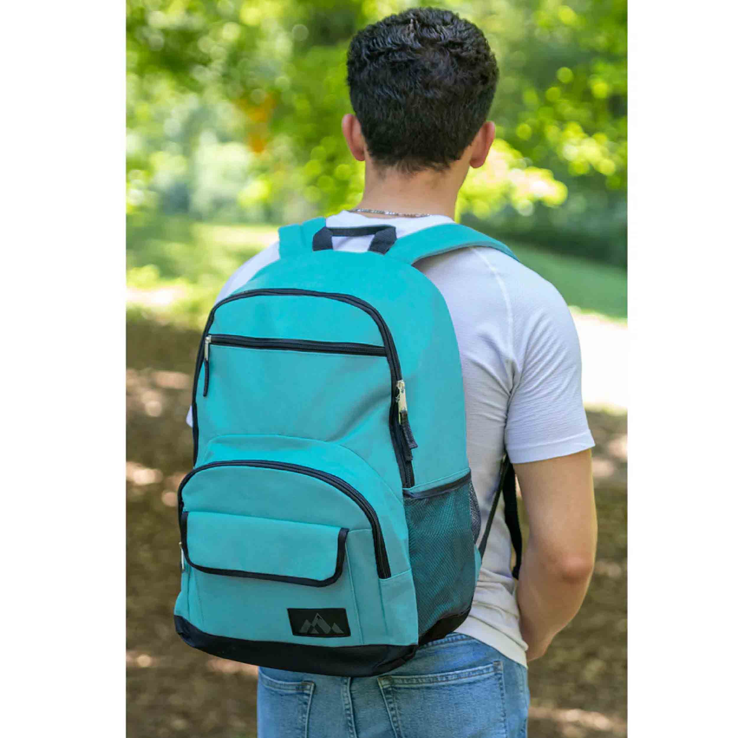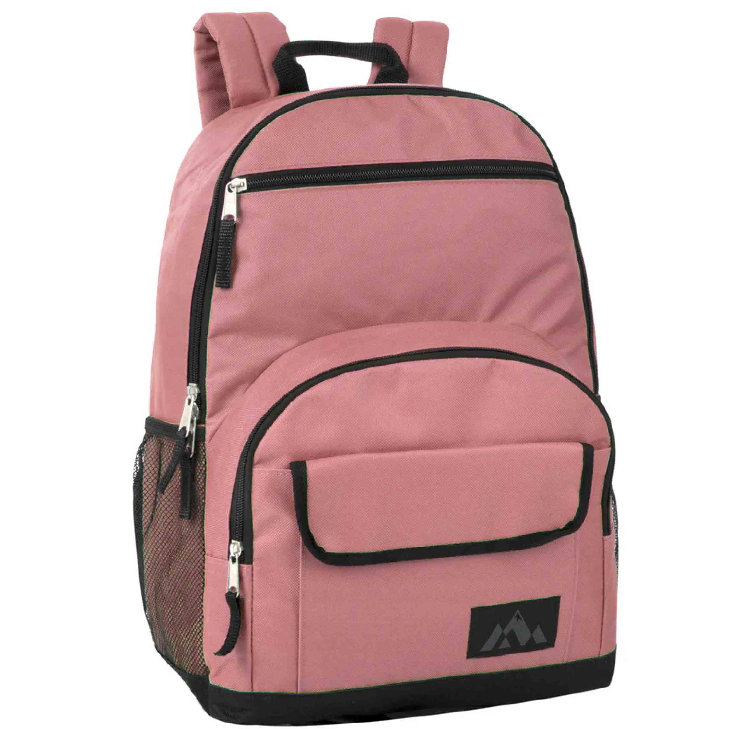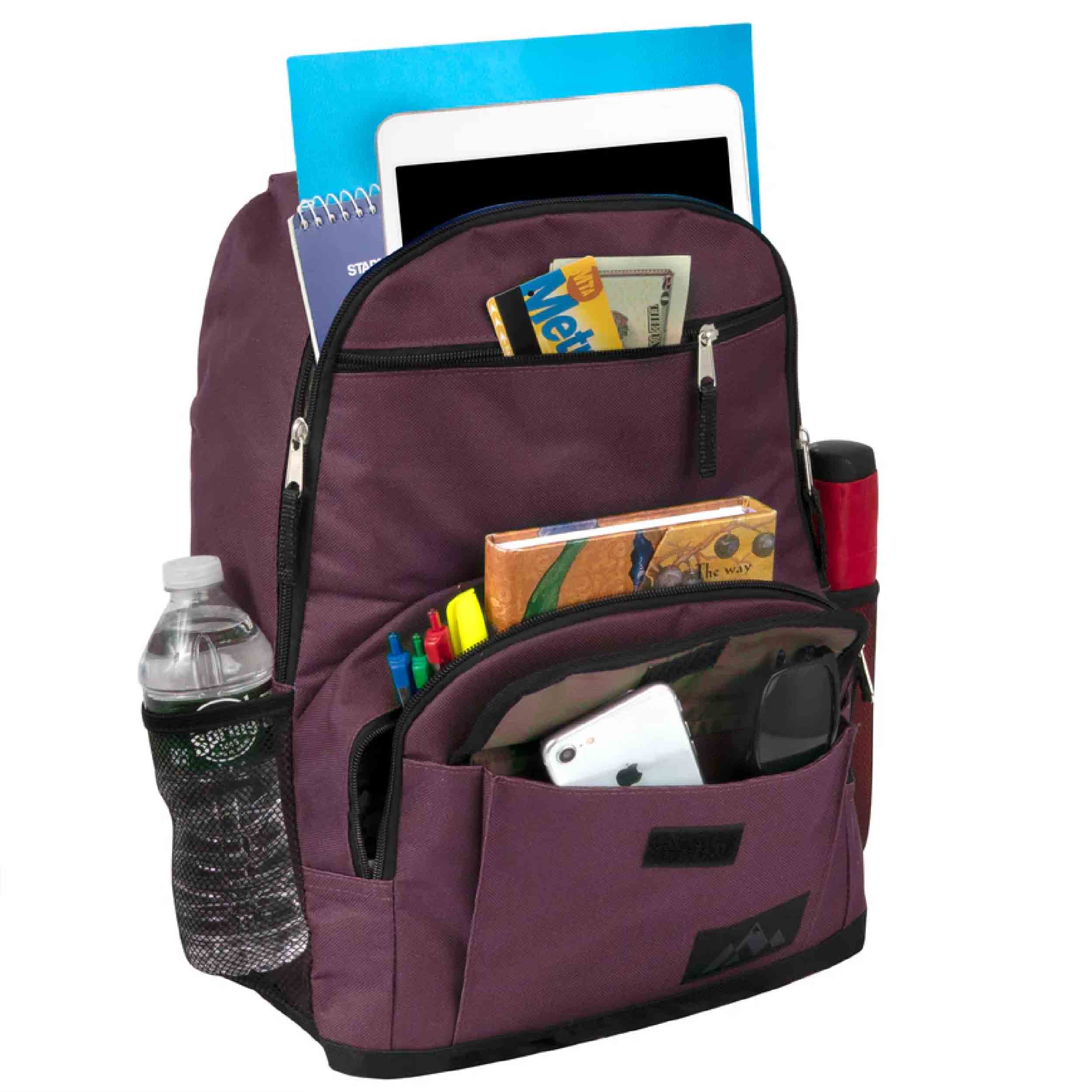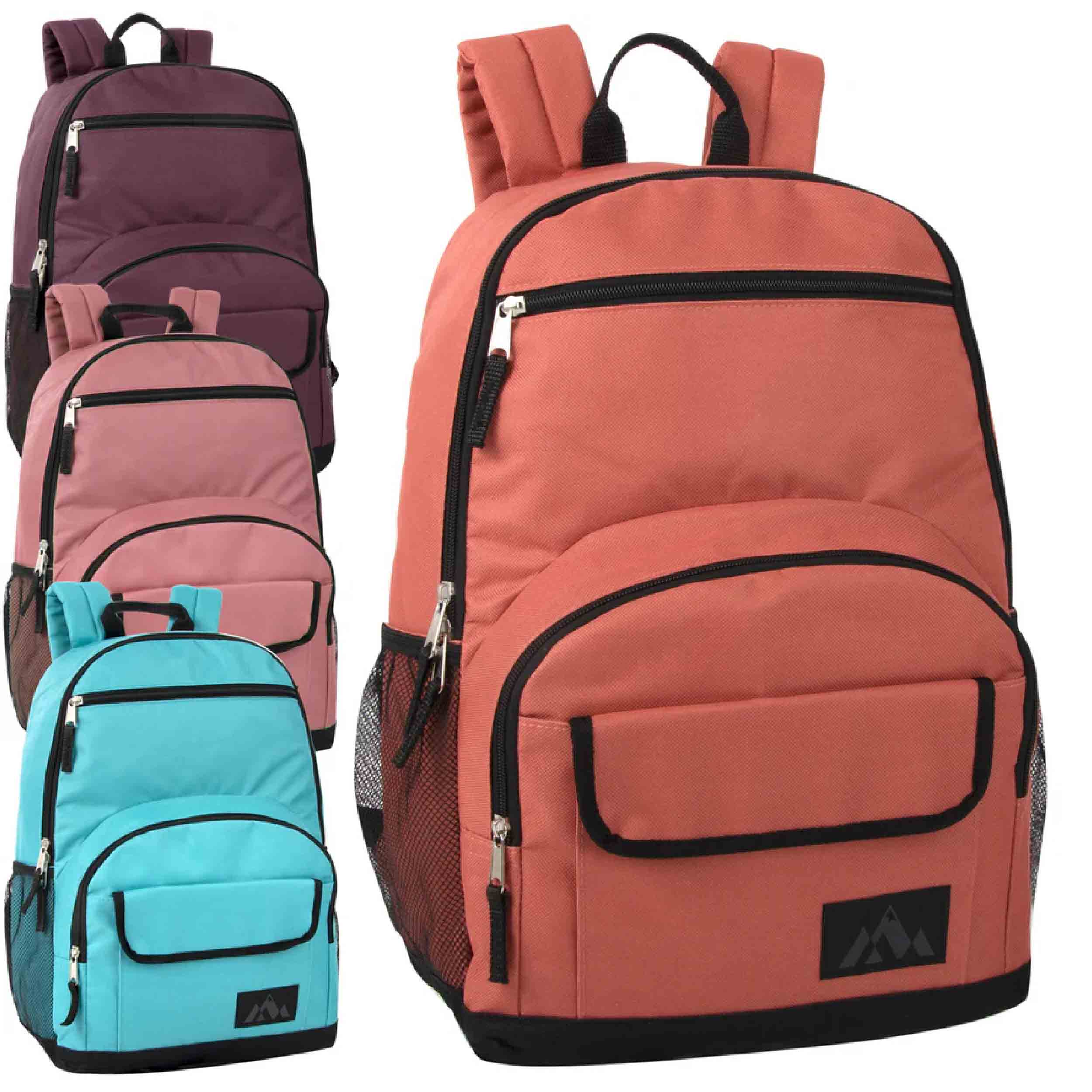 Stay organized on all your adventures with our Multi Pocket Function Backpack! Designed for functionality and durability, these wholesale backpacks are perfect for school, outdoor activities, and more. Measuring 18 x 13 x 6 inches, each backpack features two mesh side pockets and 3 front additional quick-access storage pockets. These pockets are ideal for holding water bottles, cans, or any essentials you need to keep within easy reach. The large compartments are equipped with double zippers for effortless opening and secure transportation of your school supplies or belongings. Padded and adjustable straps ensure comfort, making these backpacks a must-have when purchased in bulk.