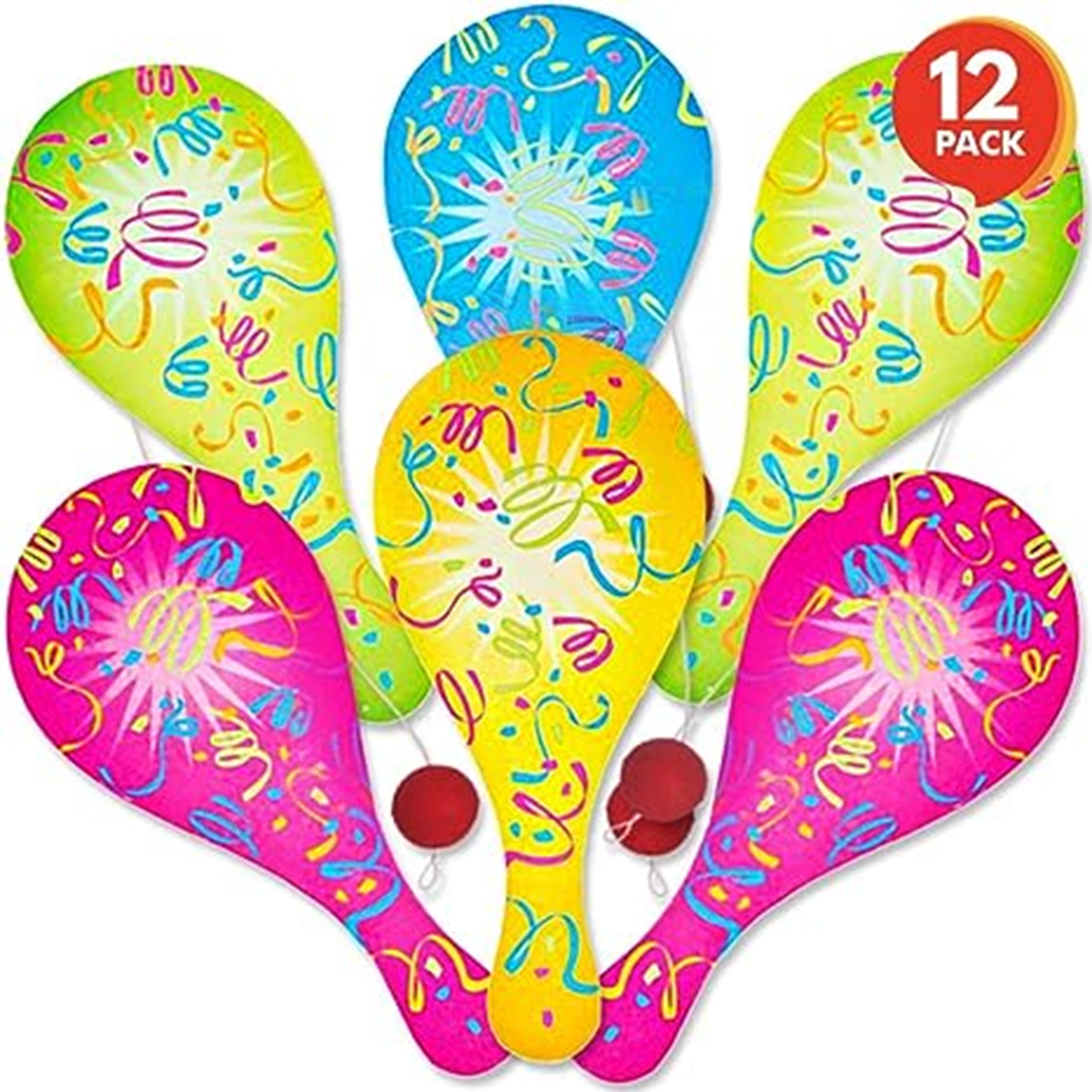 Bring back nostalgic fun with our Assorted Neon Paddle Balls Kids Toys in Bulk! This wholesale pack features a variety of paddle balls in vibrant neon colors, perfect for classic outdoor play and entertainment. Each assortment includes multiple paddle balls with attached strings and rubber balls, providing endless hours of bouncing and catching fun. Made from durable materials, these paddle balls are suitable for kids of all ages and can withstand vigorous play. Whether for party favors, carnival prizes, or retail resale, our bulk pack of assorted neon paddle balls is sure to be a hit with kids and adults alike.