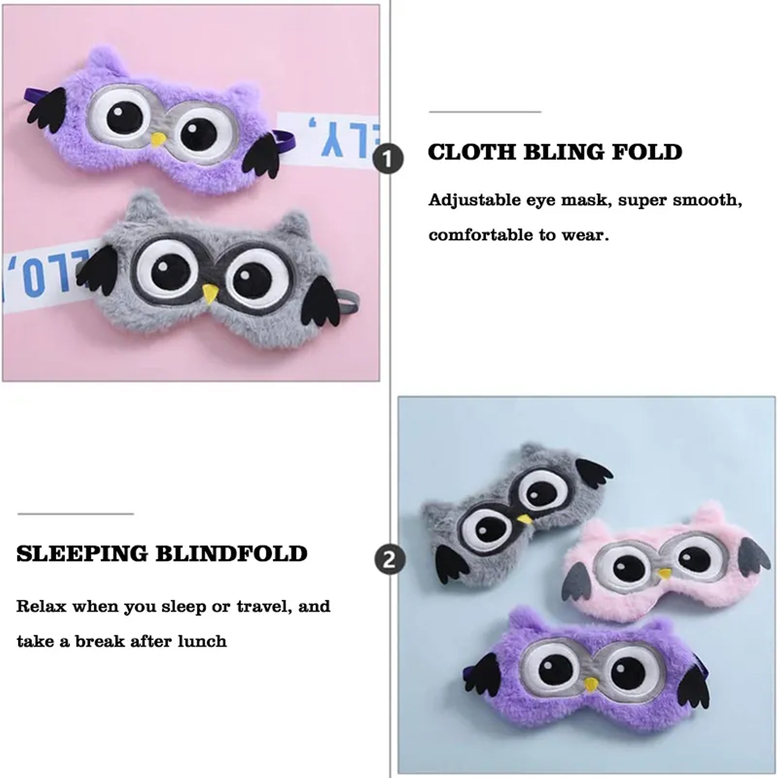 Introducing our Owl Plush Sleep Blackout Eye Mask for Kids, a charming and cozy addition to bedtime routines! This adorable eye mask, designed in the shape of an owl, is crafted from soft and plush materials to ensure a snug and comfortable fit for your little one. Perfect for aiding in peaceful sleep, it effectively blocks out light, creating a dark and serene environment conducive to better rest. The owl's design adds a playful touch while assisting children in achieving a restful night's sleep or a peaceful nap.