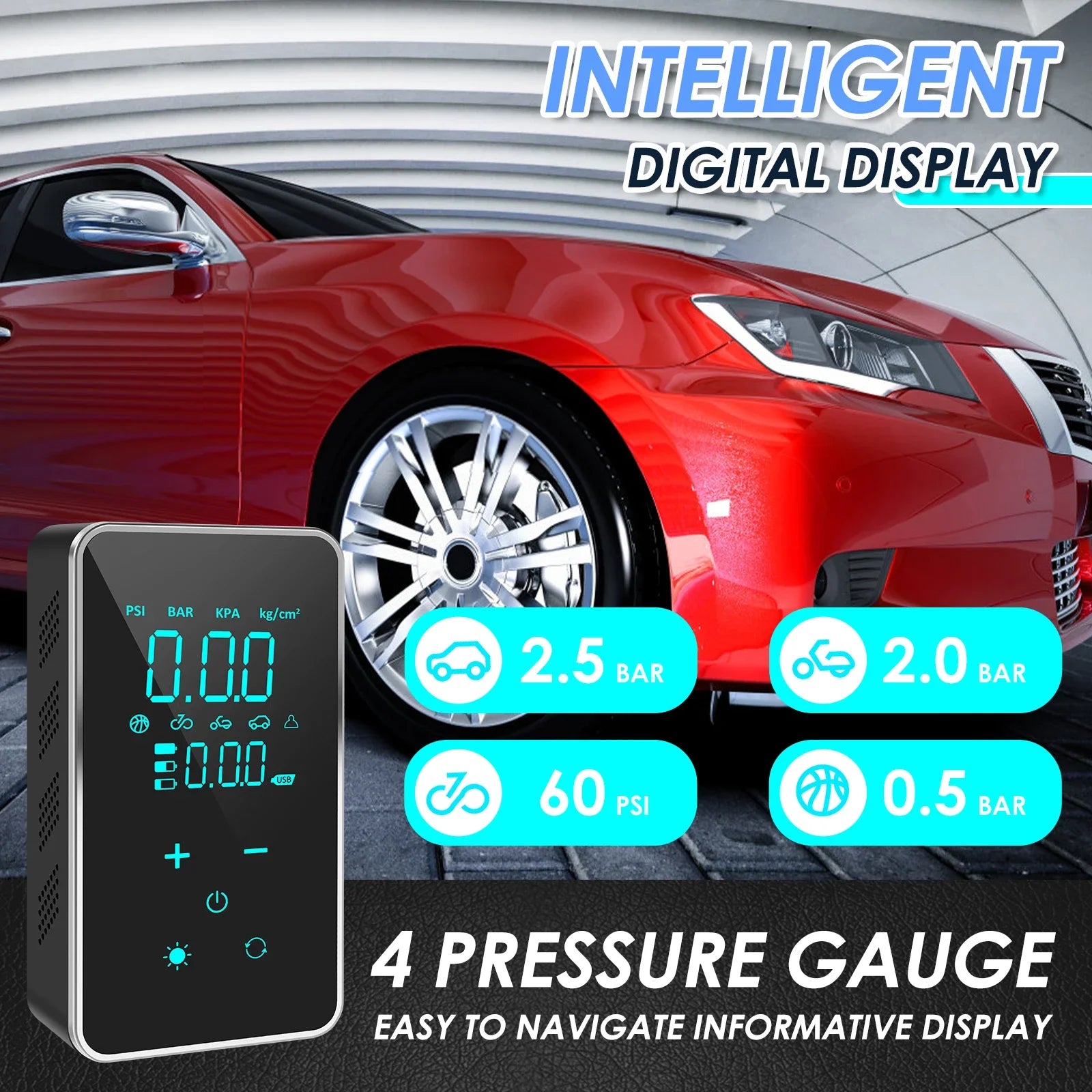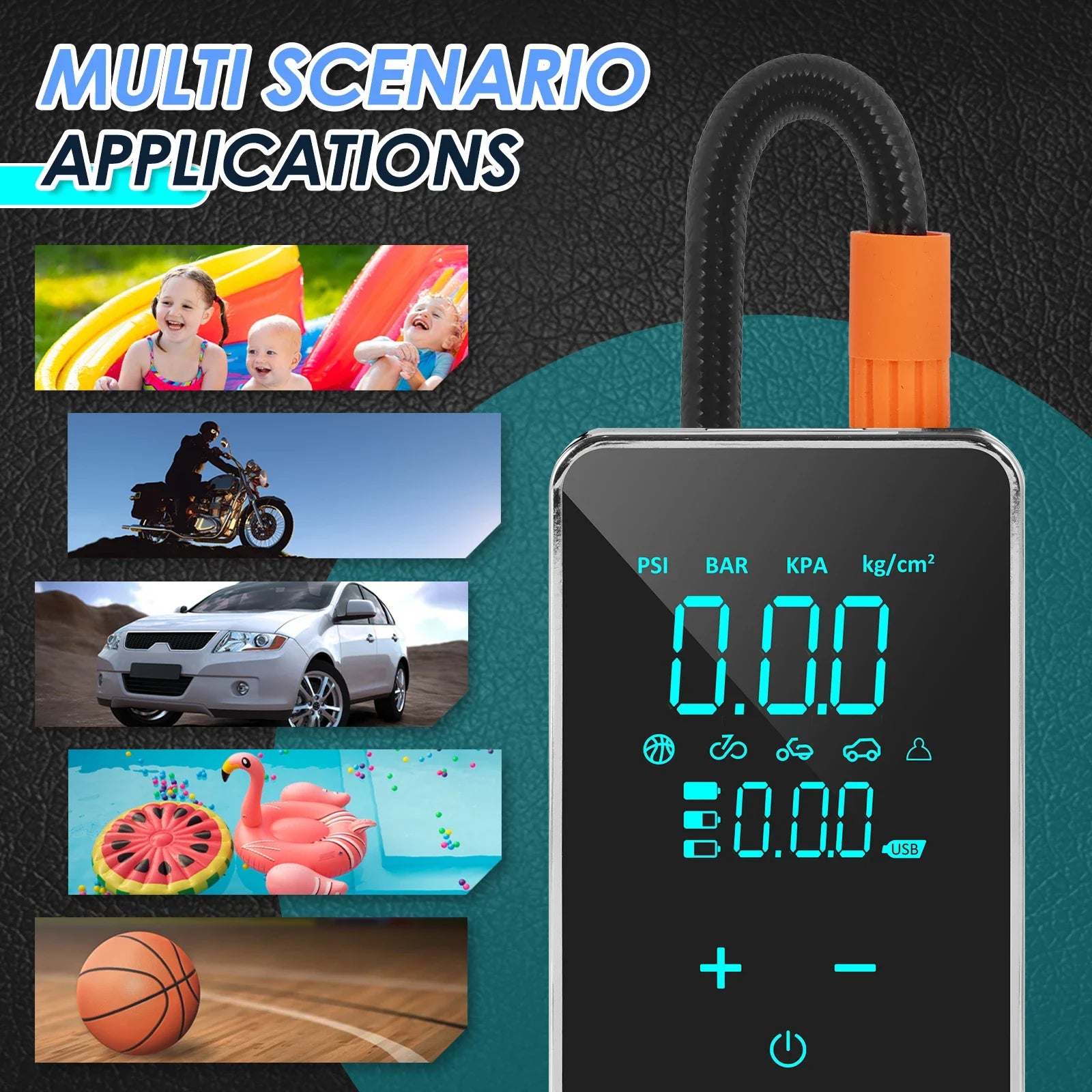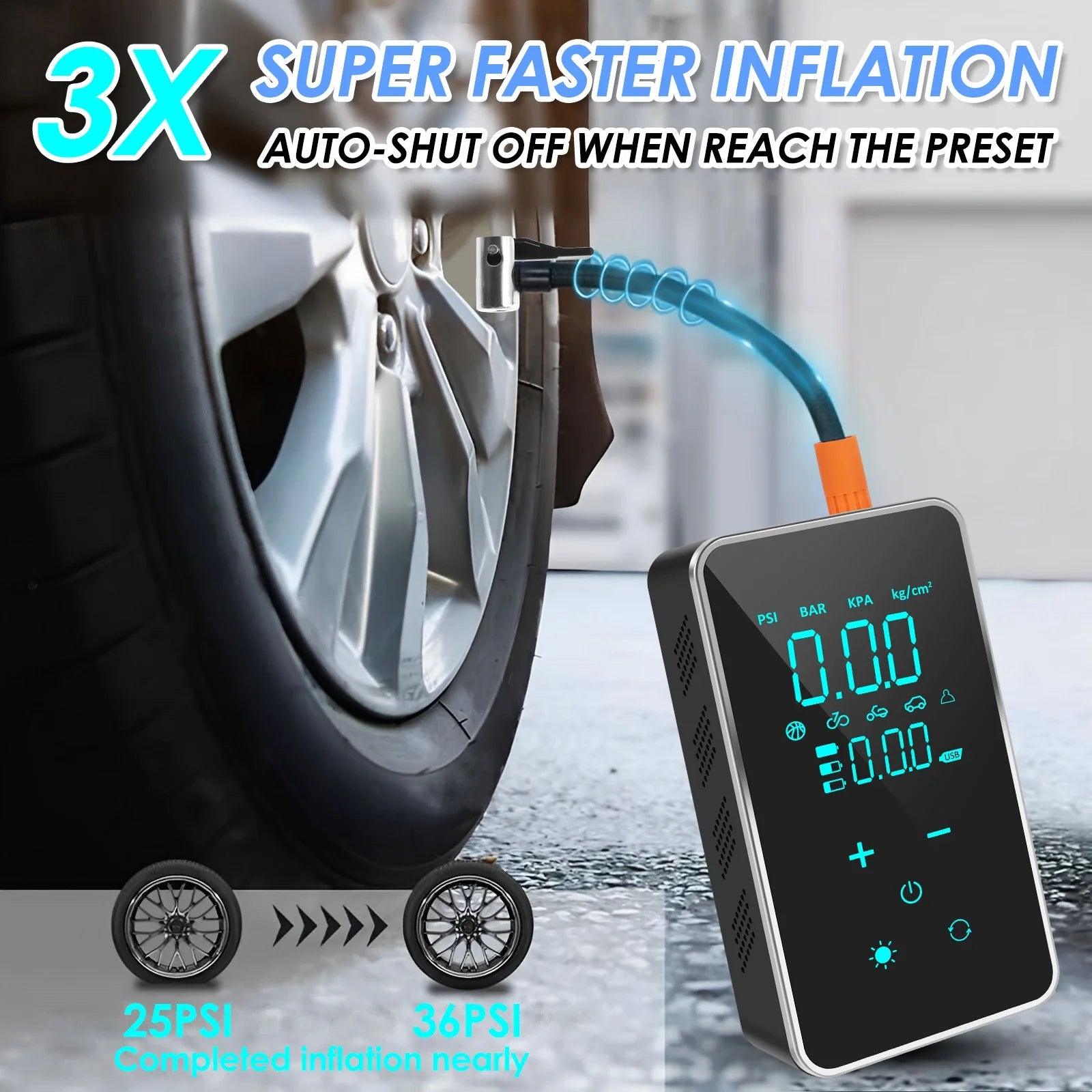 This compact, handheld air compressor delivers powerful inflation up to 150 PSI, making it suitable for a wide range of uses, from car, motorcycle, and bicycle tires to sports equipment and inflatable toys.