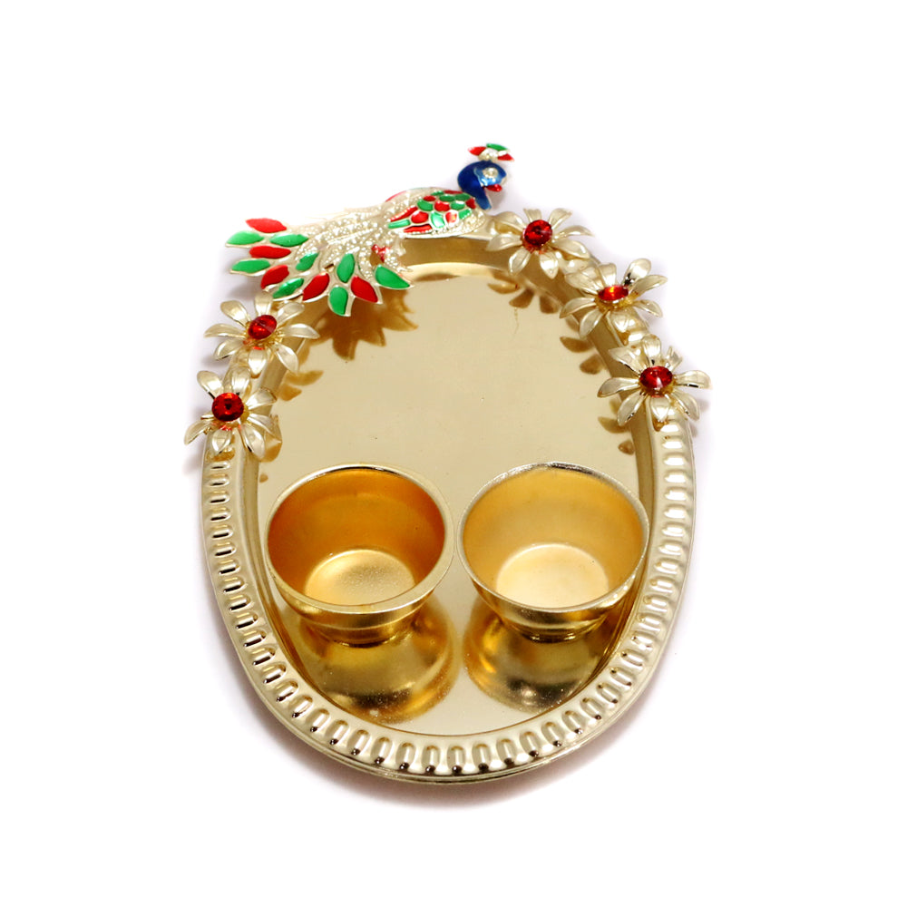 Introducing our intricately designed Puja Plate, a symbol of reverence and devotion. Crafted with precision, this ornate plate is an essential accessory for your spiritual rituals and ceremonies. The thoughtful design incorporates multiple sections, providing a dedicated space for various sacred items during your puja. Elevate your worship experience with this beautifully crafted Puja Plate, blending tradition with elegance.