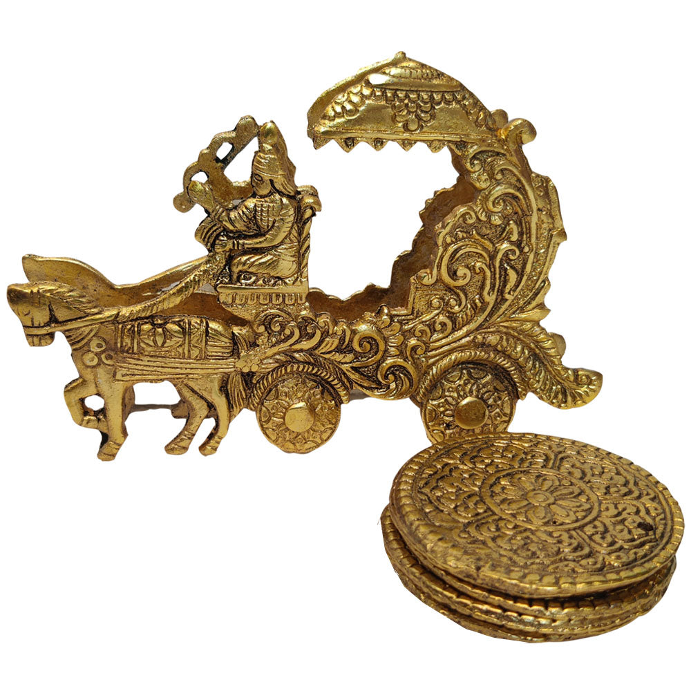 Experience the essence of spirituality with our Rath Coaster, a beautifully crafted coaster inspired by the traditional temple chariot. The intricate design and attention to detail make it a unique piece for both practical use and sacred ambiance. Each coaster is a miniature representation of the divine Rath, adding a sense of tradition and elegance to your home.