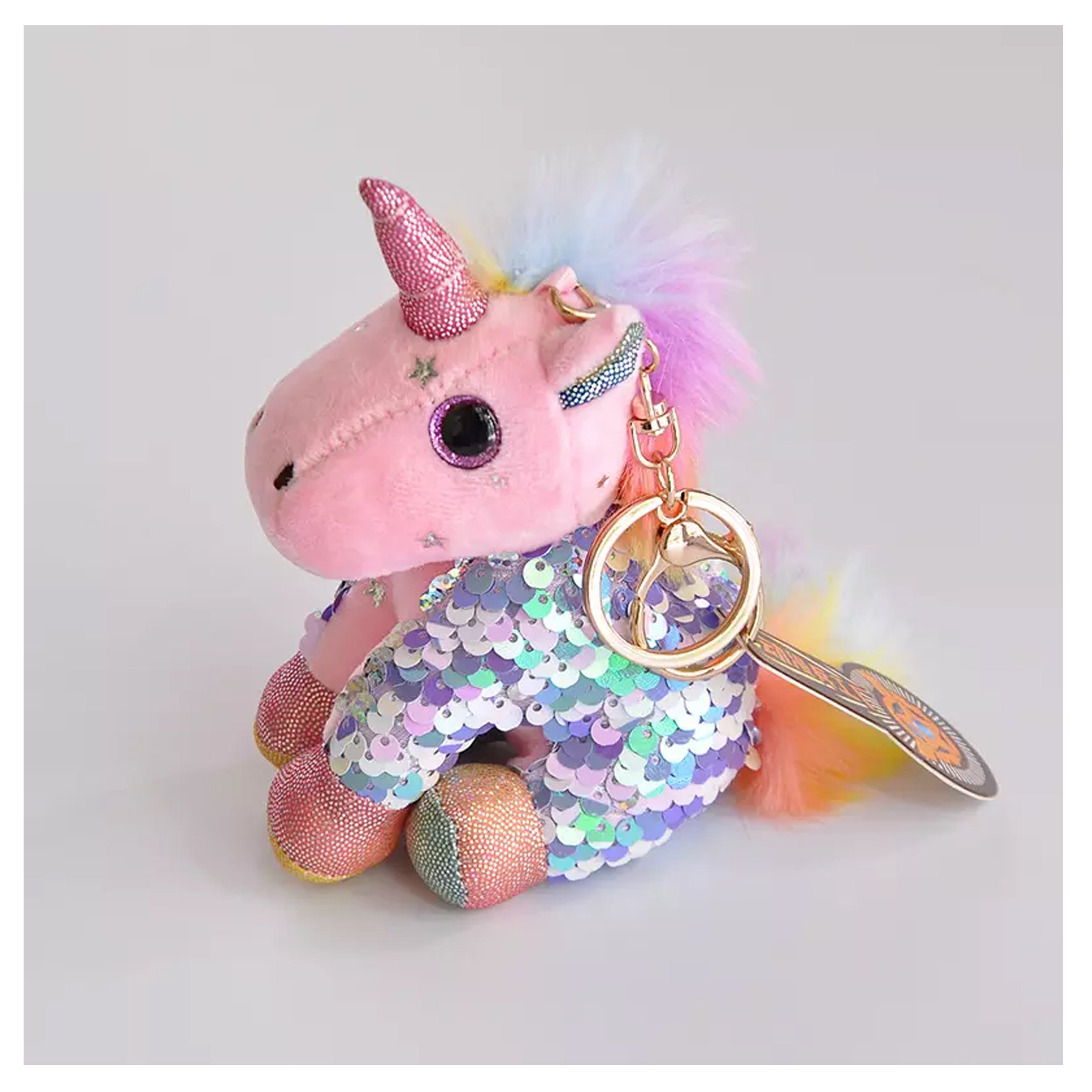 Elevate your style with our Sequins Unicorn Key Chain Plush Toy! This enchanting keychain features a delightful unicorn plush adorned with shimmering sequins, adding a touch of sparkle to your keys, backpack, purse, or any accessory you prefer. Its versatile design allows it to be used not just as a keychain but as a stylish accessory that adds charm and flair to your belongings. The sequins bring a magical, eye-catching element to this plush toy, making it a fun and fashionable companion for all your daily adventures.