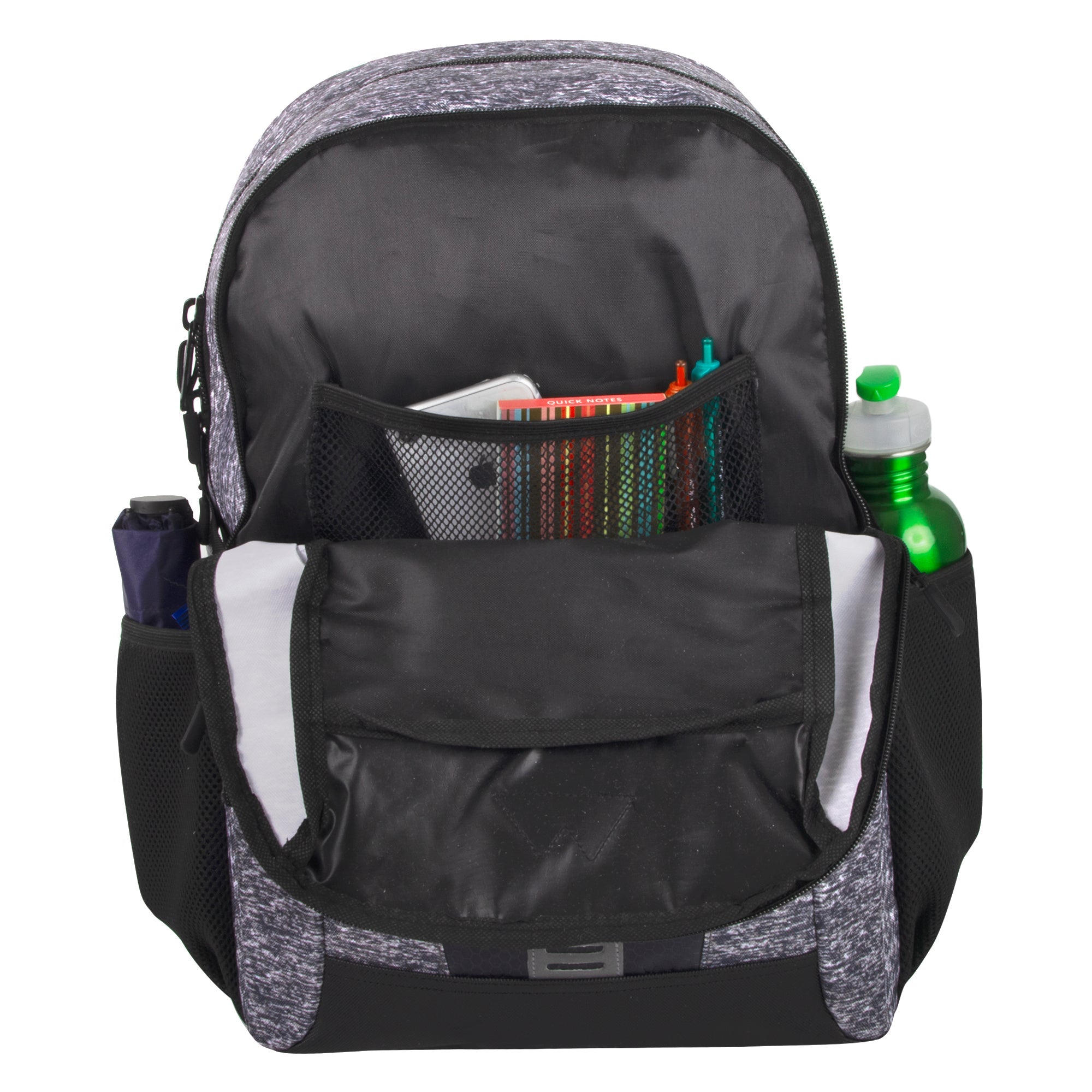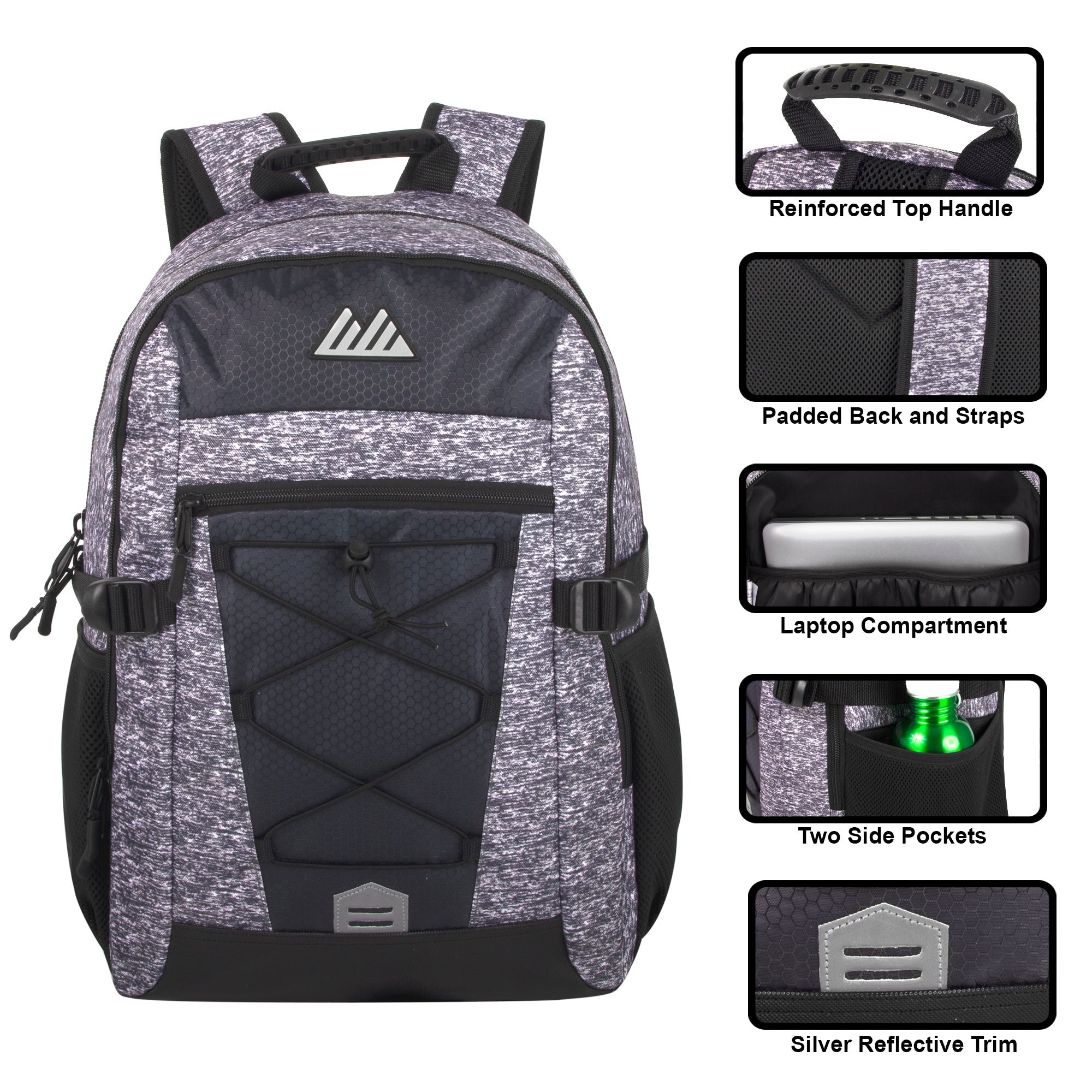 Our Wholesale 19 Inch Heather Bungee Backpack is jam-packed with all the bells and whistles. This backpack features super spacious compartments great for storage for your books, tools, sports gear, and more.