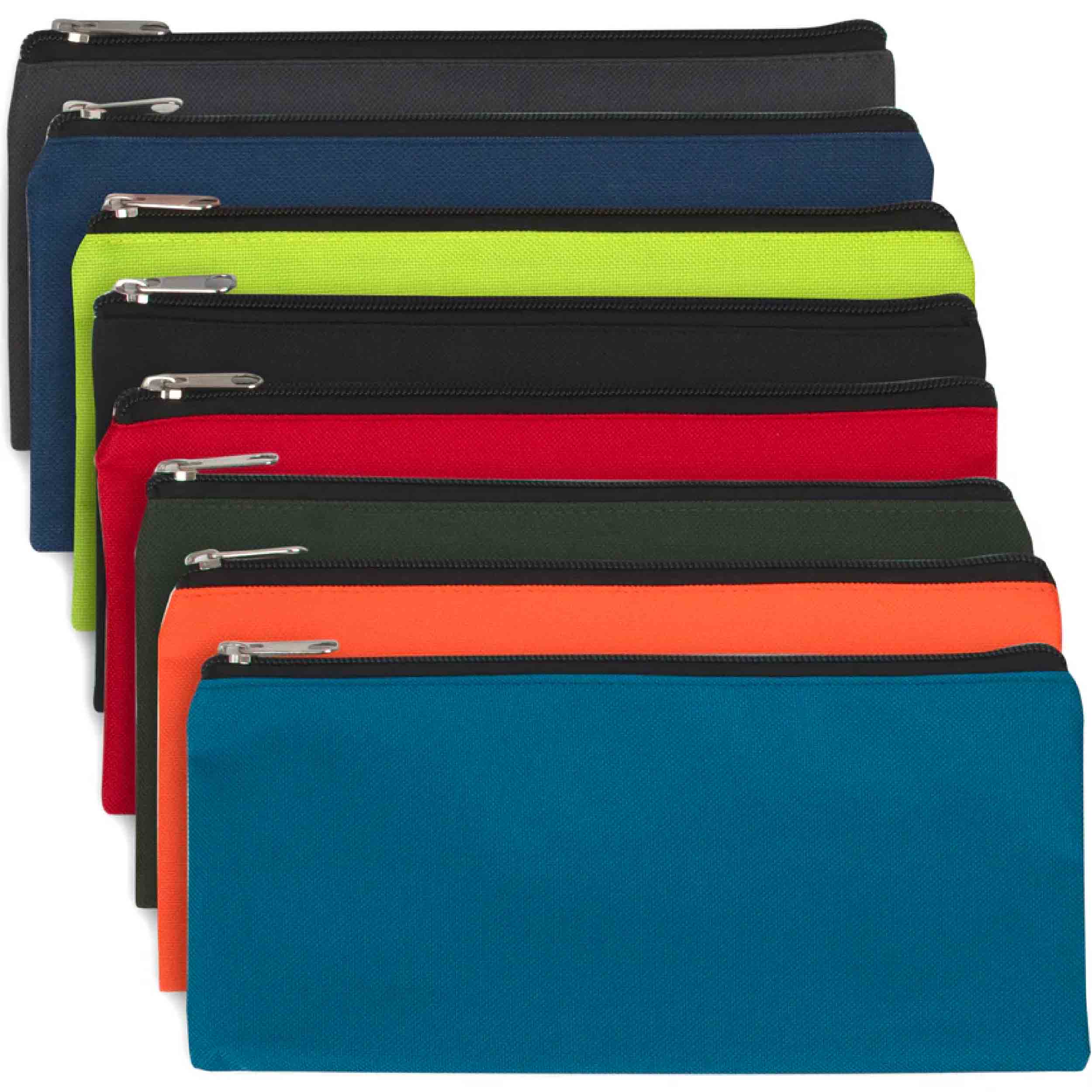 Keep your writing supplies organized and protected with our Zippered Pencil Pouches. These portable pouches are perfect for storing pens, pencils, erasers, and other small items, ensuring you have everything you need throughout the day. Crafted from strong 600D polyester, these pouches offer durability and reliability for long-term use. Each pouch features a strong quality zipper that securely seals your belongings inside. Whether you're a student, artist, or professional, our wholesale pencil pouches are an essential addition to your organization system.