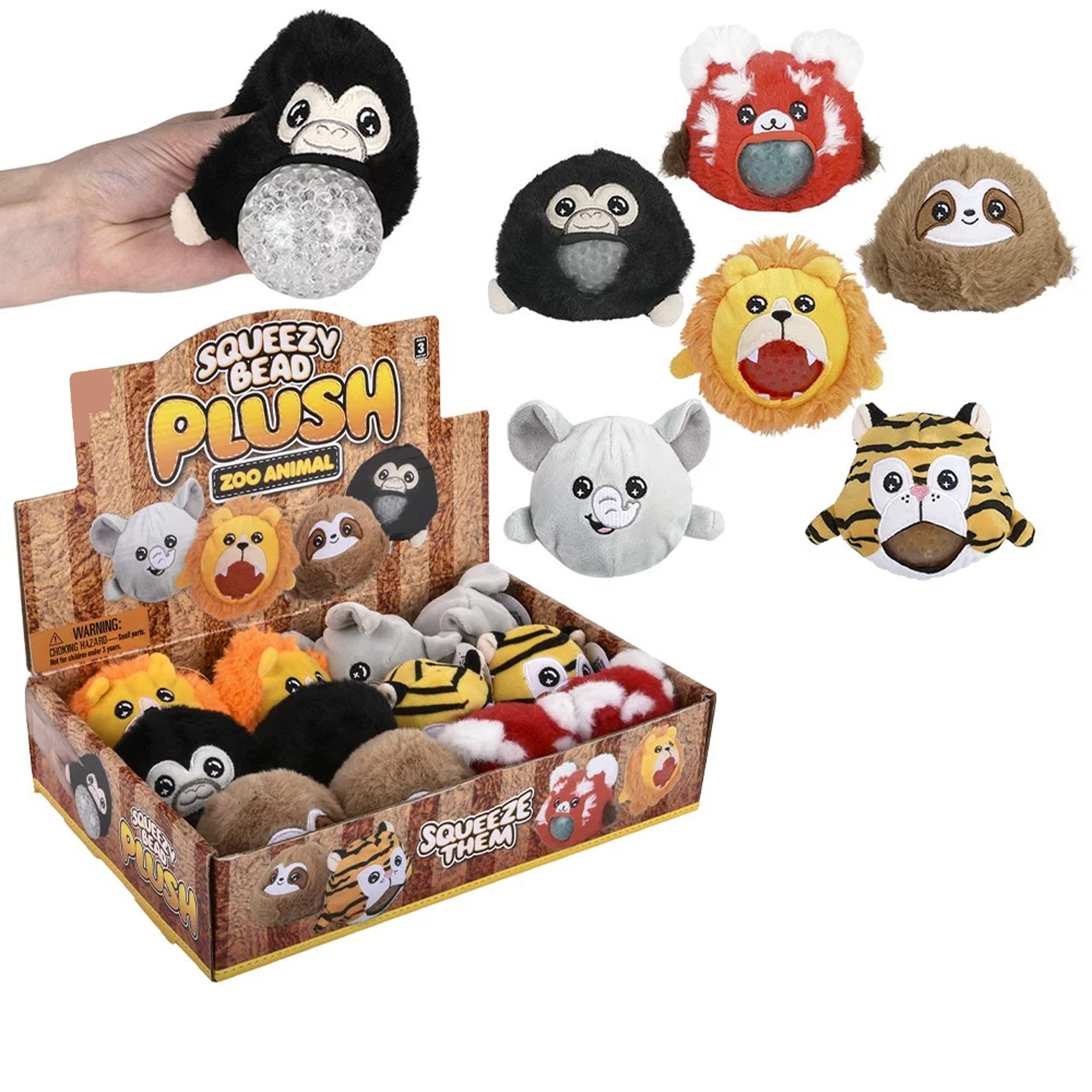 Assorted Animals: With a variety of zoo animals available, these squeezy bead plush toys add a touch of the wild to playtime and allow children to learn about different animal species. From fierce lions to playful monkeys, there's a plush toy for every animal lover.